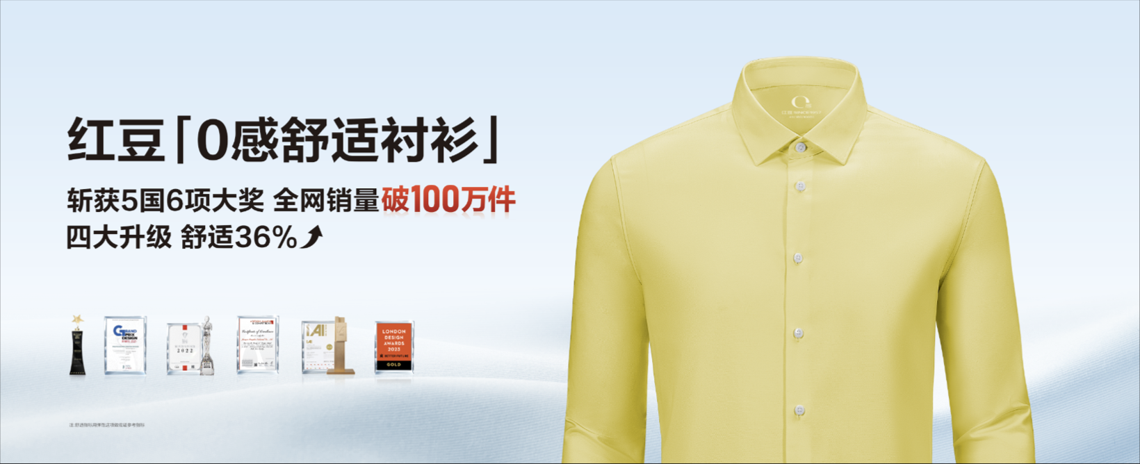 定位“经典舒适男装”,红豆男装全方位进行品牌高端化战略转型,2022年以行业首创AR发布会形式推出新一代舒适衬衫“红豆0感舒适衬衫”,被中国服装协会授予“舒适男装赛道开创者”称号,2024年红豆0感舒适衬衫四大升级,舒适提升36%。红豆,让更多人穿上奢侈品级舒适男装。