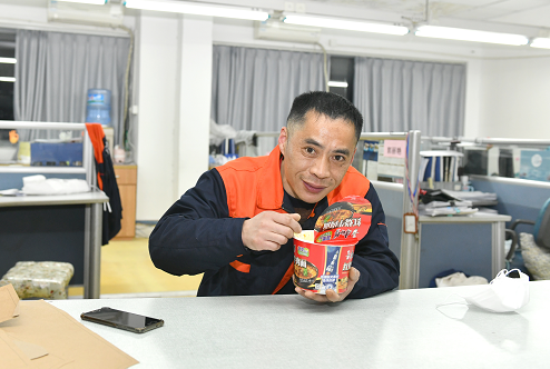 红豆转产防疫物资以来,吴晓东已记不清自己多少次凌晨回家,从春节假期返厂至今,不断坚守岗位已经陆续在吃了一个多月的方便面,被同事们称为“方便面”科长。
