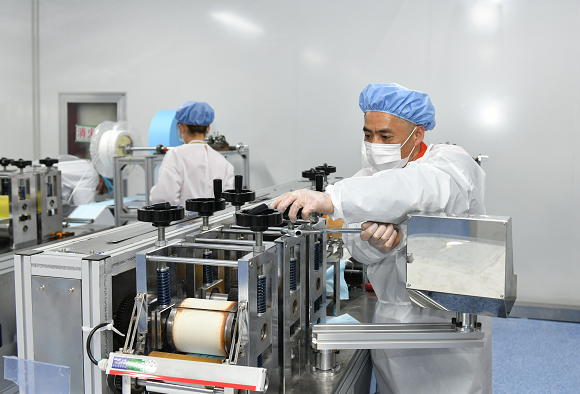 抗击新冠疫情仍处于关键期,口罩作为一线医护、企业复工、民众出行的必备品,需求量仍暴增。3月3日凌晨3点,刚刚运送到红豆口罩生产车间的两套全自动口罩生产设备,在经历了几小时的安装、调试后,顺利开工,保守预计日产可达10万只。看着一片片从全自动口罩机上飞速下来的洁净口罩,“金牌”调试员、红豆运动装公司技术科科长吴晓东,也被同事戏称为“方便面”科长的他长舒一口气,揉了揉早已酸涩的双眼,准备下班。