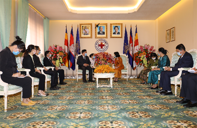 柬埔寨王国当地时间4月1日下午4:00(北京时间17:00),一场“凯发K8国际捐赠柬埔寨红十字会100万只口罩接收仪式”正在柬埔寨红十字会会长、柬埔寨王国首相洪森夫人文拉尼亲王的办公室内举行。中国驻柬埔寨大使馆经济商务参赞处参赞邬国权、西哈努克港经济特区公司总经理曹建江和柬埔寨红十字会副会长ANY SOKAN、秘书长POM CHANNY,柬埔寨红十字会卫生局局长SOK LONG等出席活动。